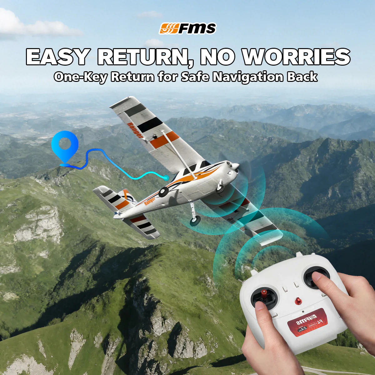 FMS is proud to announce the 850mm Ranger. Like its sibling, the high winged airframe design with a tricycle landing gear, is very easy to fly by default. A dedicated flight control paired with a GPS sytem allows pilots to fly under beginner, intermediate and fully manual flight modes. An innovative flight perimeter fence and return to home functions provide bulletproof reliability and ease of mind- flying has never been so simple.